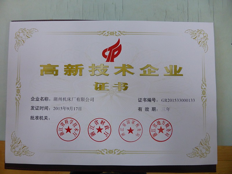 經浙江省科技廳、浙江省財政廳、浙江省國家稅務局、浙江省地方稅務局確認,我公司再一次被確認為高新技術企業。有效期至2018年9月。