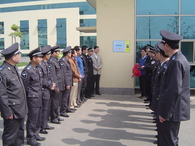 為進(jìn)一步推進(jìn)警民共建,加強(qiáng)治安保衛(wèi),在公司所在地公安機(jī)關(guān)的直接領(lǐng)導(dǎo)和全力支持下,公司警衛(wèi)日前完成整體改組,改組后已由原來的傳達(dá)警衛(wèi)人員轉(zhuǎn)換為業(yè)務(wù)受公安機(jī)關(guān)直接領(lǐng)導(dǎo)的保安人員。2006年4月25日上午湖州經(jīng)濟(jì)開發(fā)區(qū)有關(guān)領(lǐng)導(dǎo)和公司總經(jīng)理與換裝一新公司保安人員在公司東大門為公安機(jī)關(guān)駐湖州機(jī)床廠警務(wù)室舉行揭牌儀式。